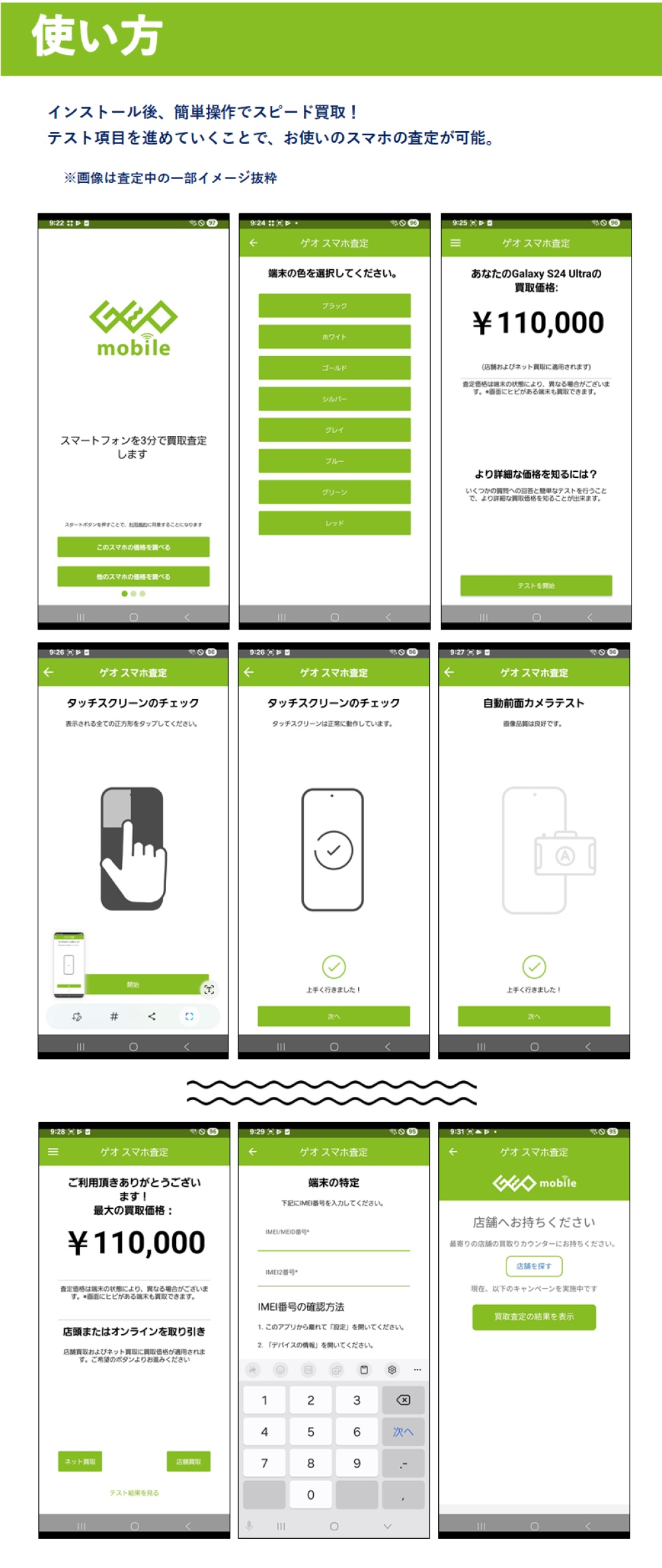 ゲオモバイルがBlancco社の検品ソリューション技術を取り入れて開発した、無料の買取査定アプリです。